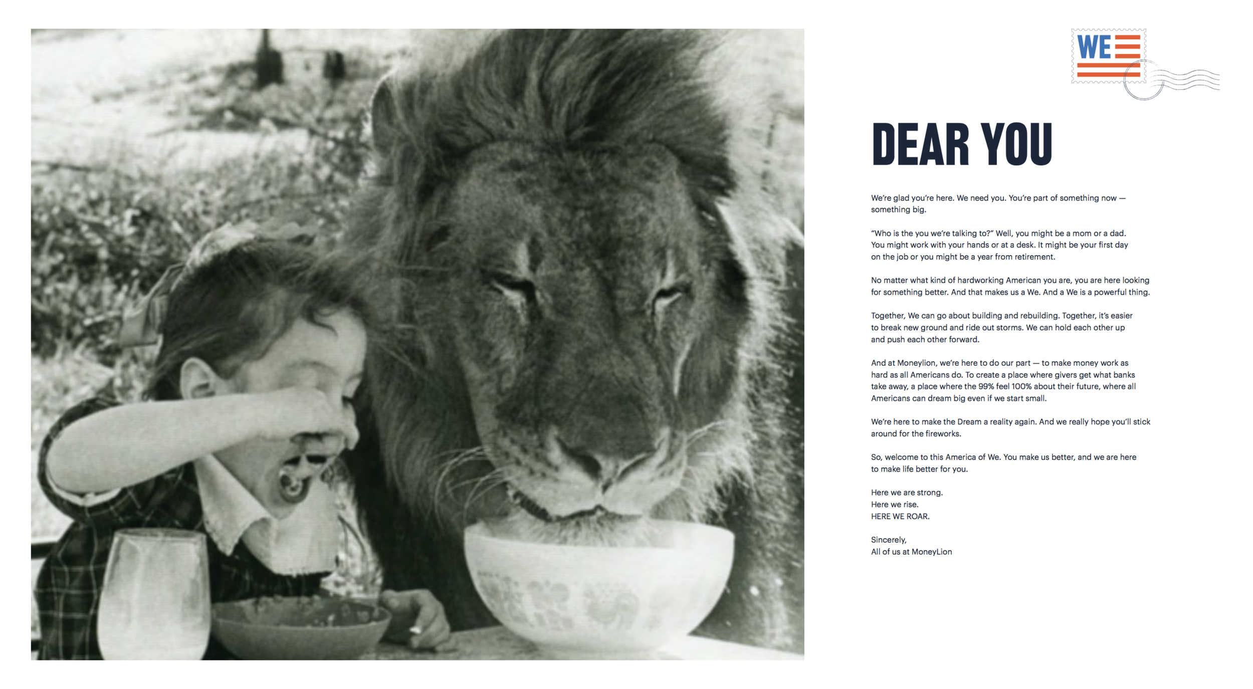 Roar: Empowerment. MoneyLion is not just a financial services brand, we are a lifestyle brand committed to empowering every American to live a better life.